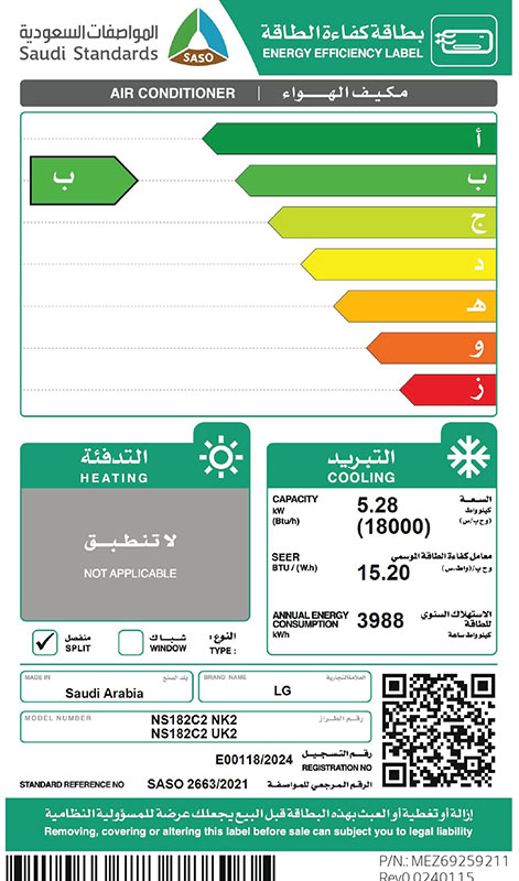 هذا المكيف مزود بضاغط ذكي عاكس من إل جي، حيث يقوم بضبط التبريد تلقائيًا حسب درجة حرارة الغرفة بدلاً من التشغيل والتوقف المتكرر كما في الضواغط التقليدية، ما يوفر راحة مستمرة واستهلاكًا أقل للطاقة وعمرًا أطول للجهازحيث يعمل المكيف لساعات طويلة يوميًا، إذ تسهم في تقليل فواتير الكهرباء مع تبريد فعال وضجيج منخفض.