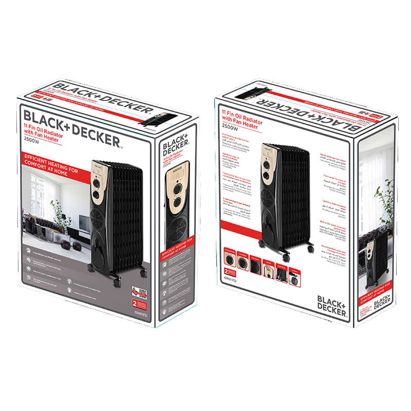 تأتي دفاية بلاك أند ديكر الزيتية بمروحة مدمجة، ما يُحسّن سرعة وانتظام توزيع الحرارة داخل الغرفة. تسهم المروحة في تسريع دوران الهواء الدافئ، مما يُقلل من الوقت اللازم لتدفئة المساحة. بفضل هذه الخاصية، تعتبر المدفأة الزيتية 11 ريشة خيارًا فعالًا ومناسبًا لمختلف أحجام الغرف.