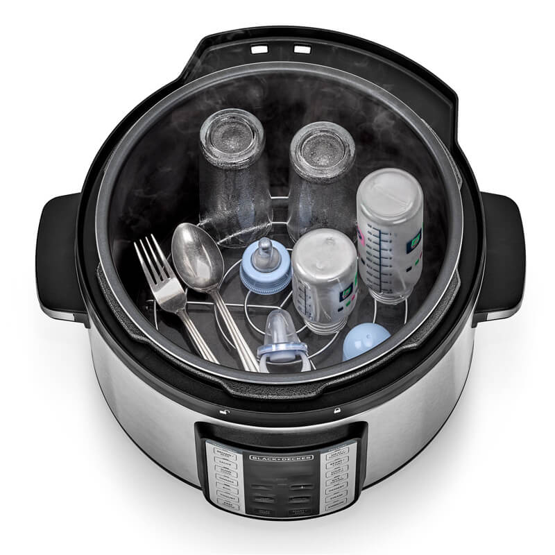 السلامة هي الأولوية مع قدر الضغط الذكي من بلاك اند ديكر. يأتي مزودًا ب 9 آليات أمان مدمجة، بما في ذلك الحماية من الحرارة الزائدة، وصمام تحرير البخار ثنائي الاستخدام، وغطاء مُحكم الإغلاق. تعمل هذه الميزات معًا لمنع الحوادث وضمان تجربة طهي آمنة.