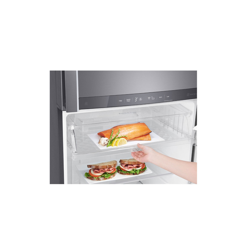 الرئيسية أجهزة كبيرة الثلاجات بابين ثلاجة إل جي بفريزر علوي 15.4 قدم مكعب – إنفرتر عاكس خطي – بابين – فضي بلاتيني