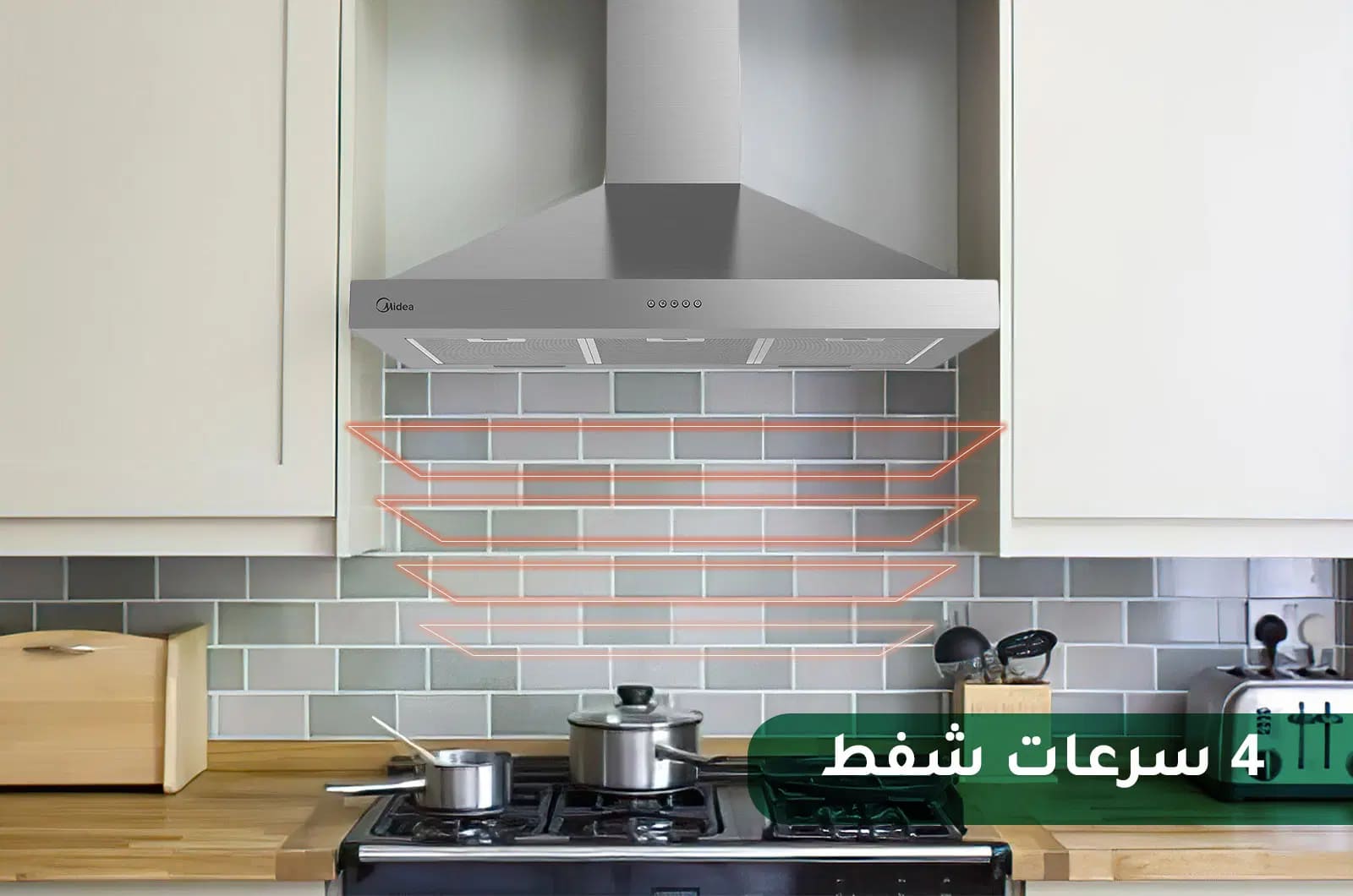 تخلص من الروائح المزعجة للطهي والقلي والشواء في المطبخ، شفاط المطبخ هذا يتميز بقوة شفط فائقة، وفلاتر داخلية وأزرار تحكم سهلة الاستخدام، ولن تضطر بعد الآن للقلق بشأن الروائح غير المرغوب فيها في مطبخك. شفاط طبخ مايديا هذا مصنوع من الستانلس ستيل الممتاز، كما تم استكمال بناءه مع فلاتر شبكية تزيل الدخان والشحوم من منطقة الطهي، وآمنة في غسالة الصحون.