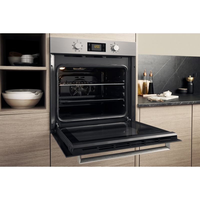 يتمتع فرن اريستون الكهربائي المدمج بنظام مروحة متطور مع لوحة خلفية محسّنة لتوزيع مثالي لتدفق الحرارة داخل جوفه بما يضمن الدوران المتساوي للهواء في جميع الاتجاهات والتحكم الإلكتروني السهل لطهي استثنائي على كل مستوى من الرفوف.