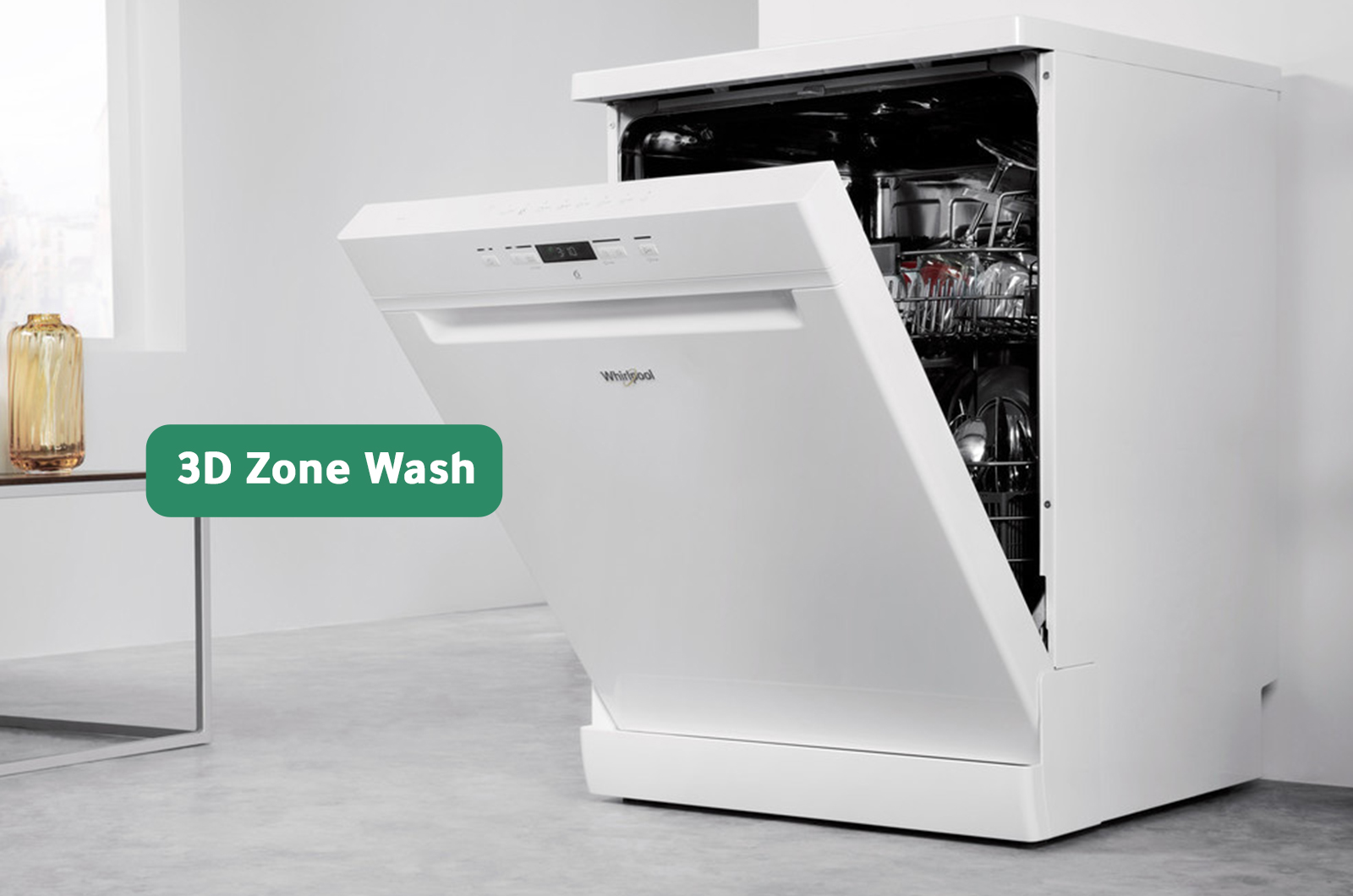 Thanks to the 3D Zone Wash technology, the Ariston dishwasher will adapt to your needs. It can act sparingly using up to 40% less energy or increase the intensity of washing by 40% and fight the heaviest dirt.
