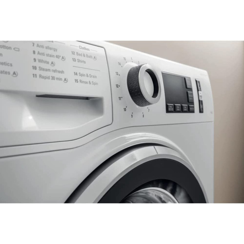 This efficient washing machine from Ariston washes your clothes very quickly without reducing cleaning performance, even with heavy loads. With a wide range of programs to choose from, you are guaranteed to have a program suitable for each of your needs, whether washing delicate clothes, shirts or jeans.