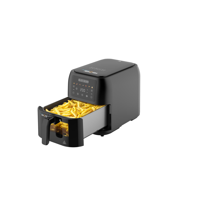 The Slim Digital AerOfry offers a spacious 8L rectangular food basket, ideal for cooking meals for the whole family. This air fryer has the ability to cook up to 1.5kg of chicken or 1.75kg of fries, allowing you to prepare larger quantities at once, which saves both time and effort.