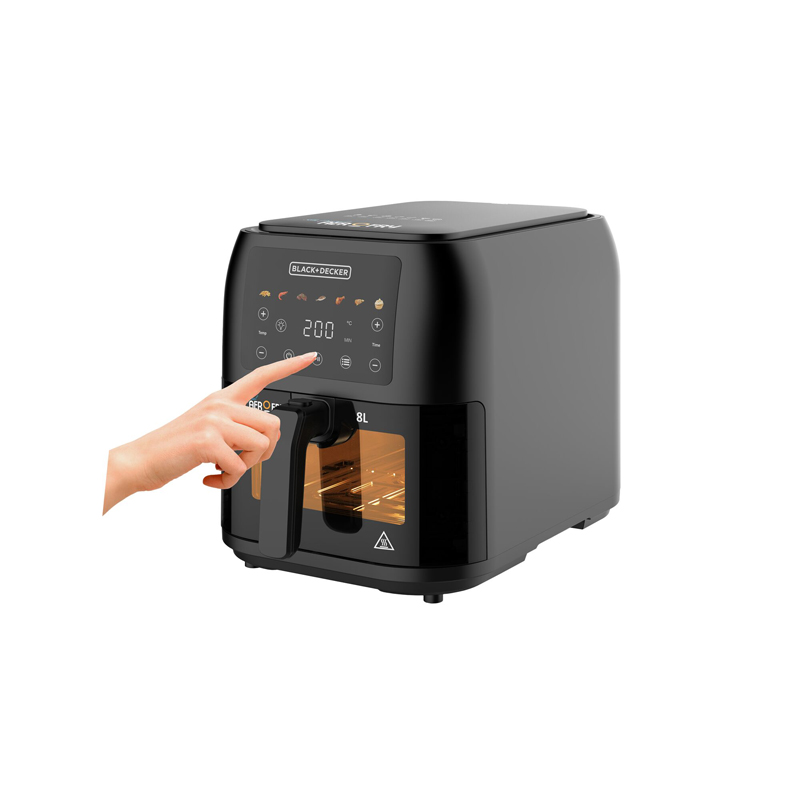 No more lifting the basket to check the food status.The spacious viewing window, along with a cavity lamp, allows you to effortlessly check your cooking status. This function helps in keeping the cooking temperature stable and ensures even results.