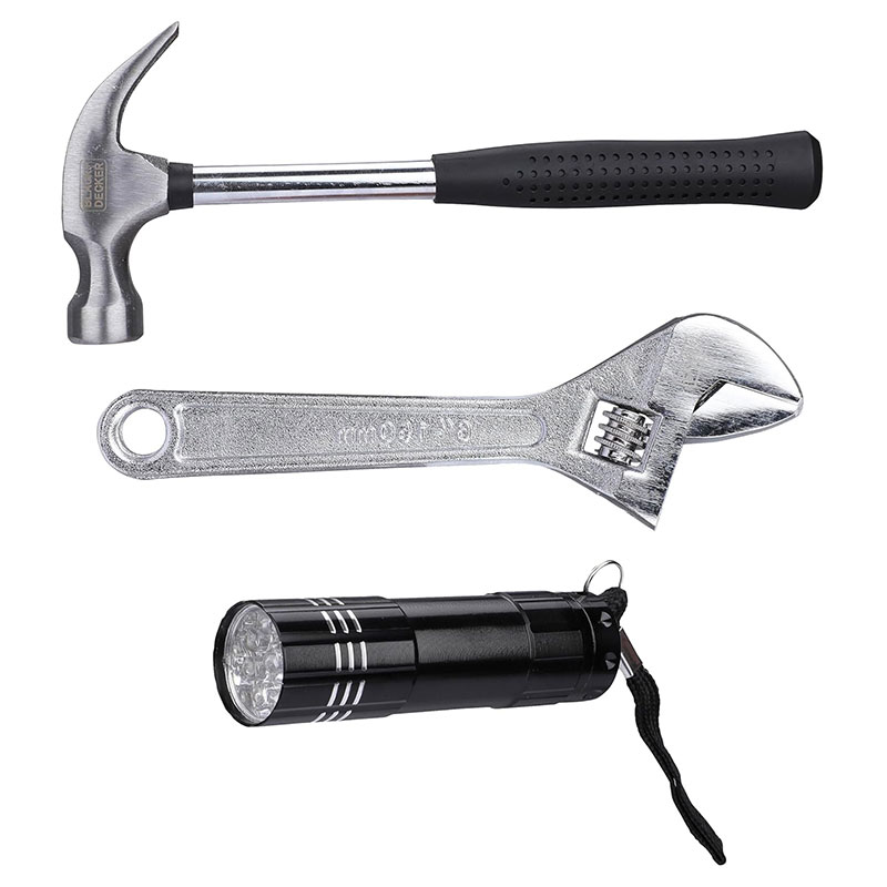 This kit includes a reliable hammer, perfect for tasks such as nailing, breaking, or fitting objects. Its durable construction ensures that it handles a variety of heavy-duty tasks around the home or office.