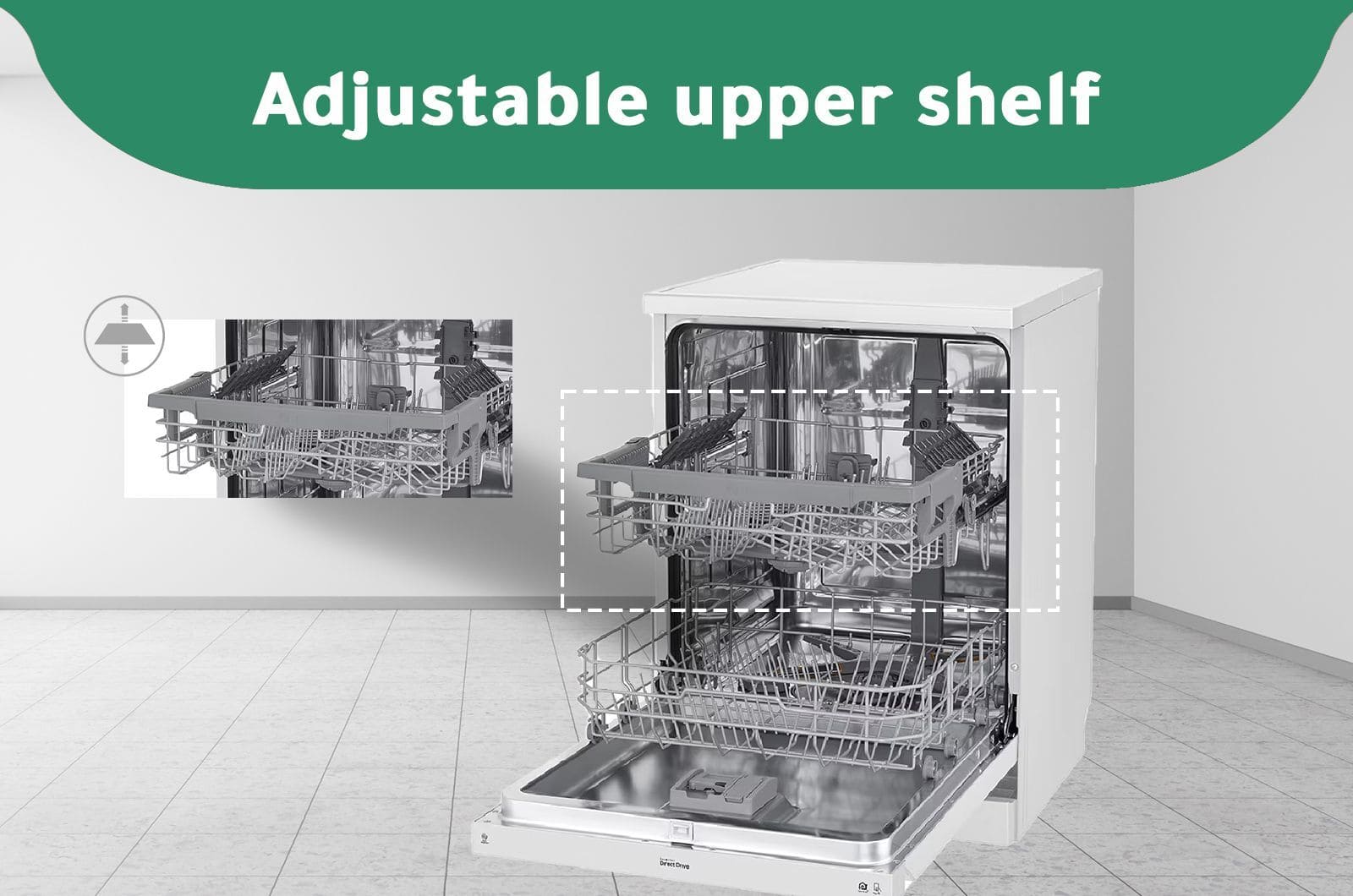 Home Large Appliances Dish Washers LG Dishwasher – 9 Programs – 14 Place Settings – White – DFB512FW