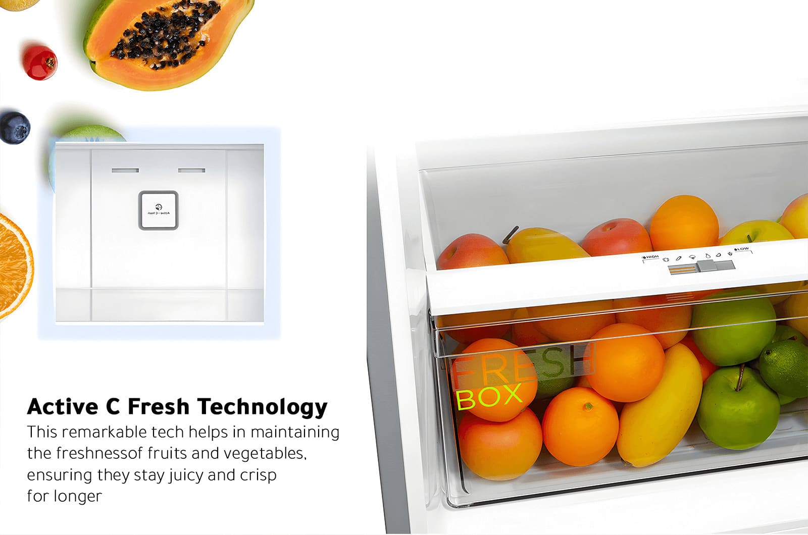 The refrigerator features a powerful cooling system that maintains a suitable refrigerator temperature to keep food fresh for a more extended period. Irrespective of the outside temperature, this refrigerator is capable of providing efficient and stable cooling to the products stored inside